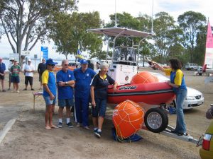 At the end of as second sailing season we applied for two of Government community grants ‑ for a club safety boat, two handheld VHF radios and a laptop computer. Both grants were generously awarded and ‘Bribie Red” a 4.2m rigid inflatable was launched in July 2004.